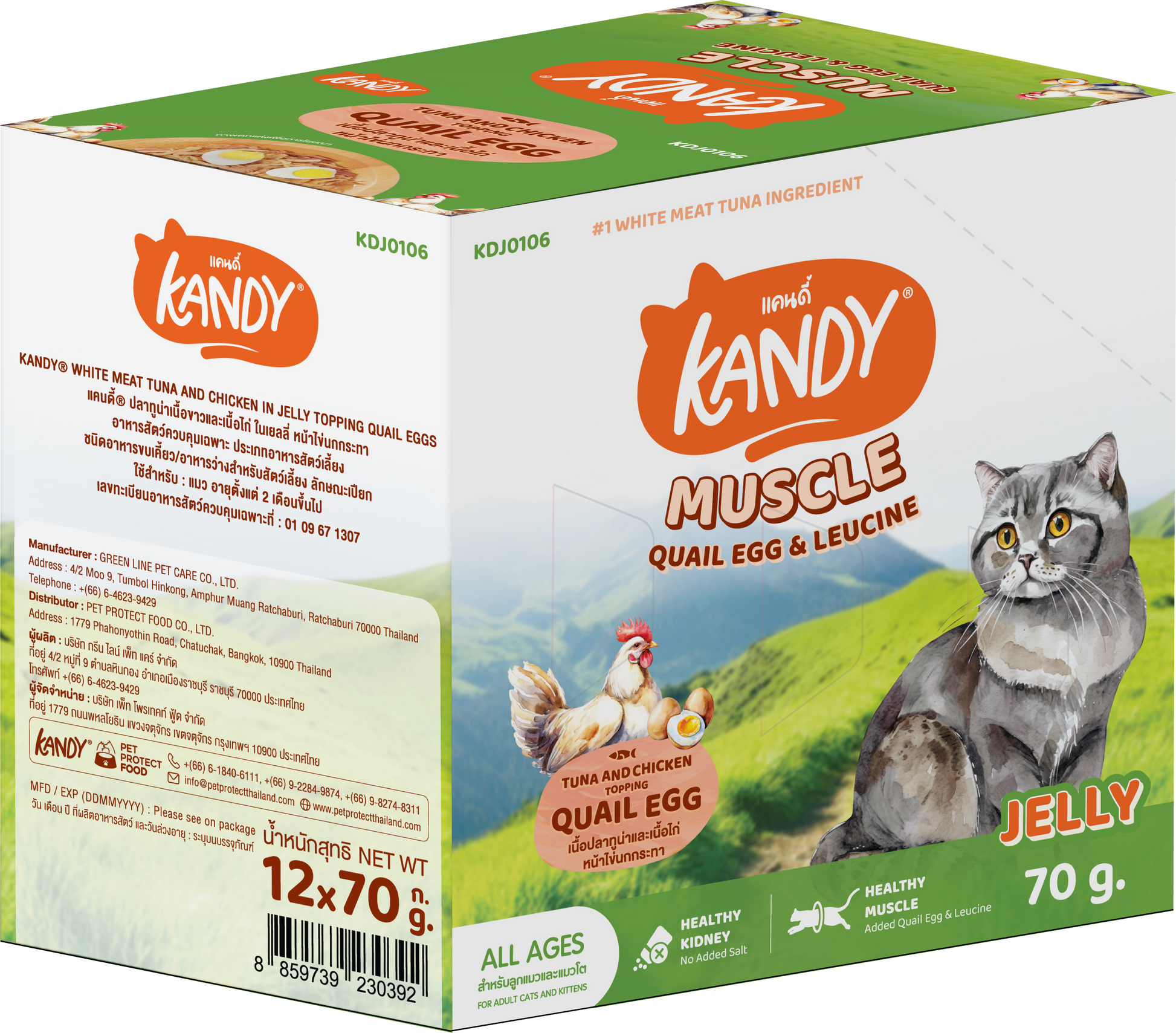 Kandy Muscle Formula Cat Wet Food 70g is specially formulated to support strong muscles and active cats. Made with real tuna and chicken in jelly, this premium wet food provides high-quality protein essential for muscle development, strength, and daily energy.